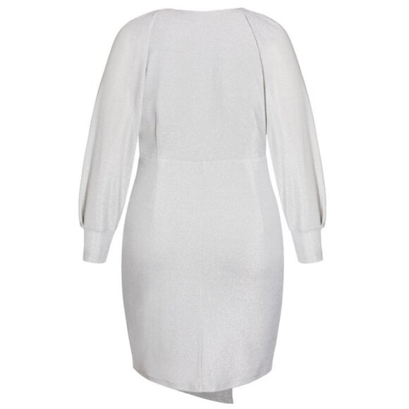 Shimmery Silver Long Sleeve Faux Wrap Dress from City Chic